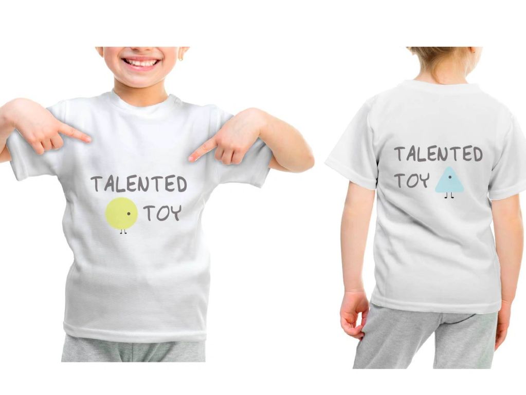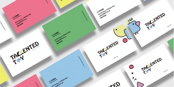 This branding design for "Talented Toy" features a playful logo with colorful fonts and simple geometric shapes, evoking creativity and fun.